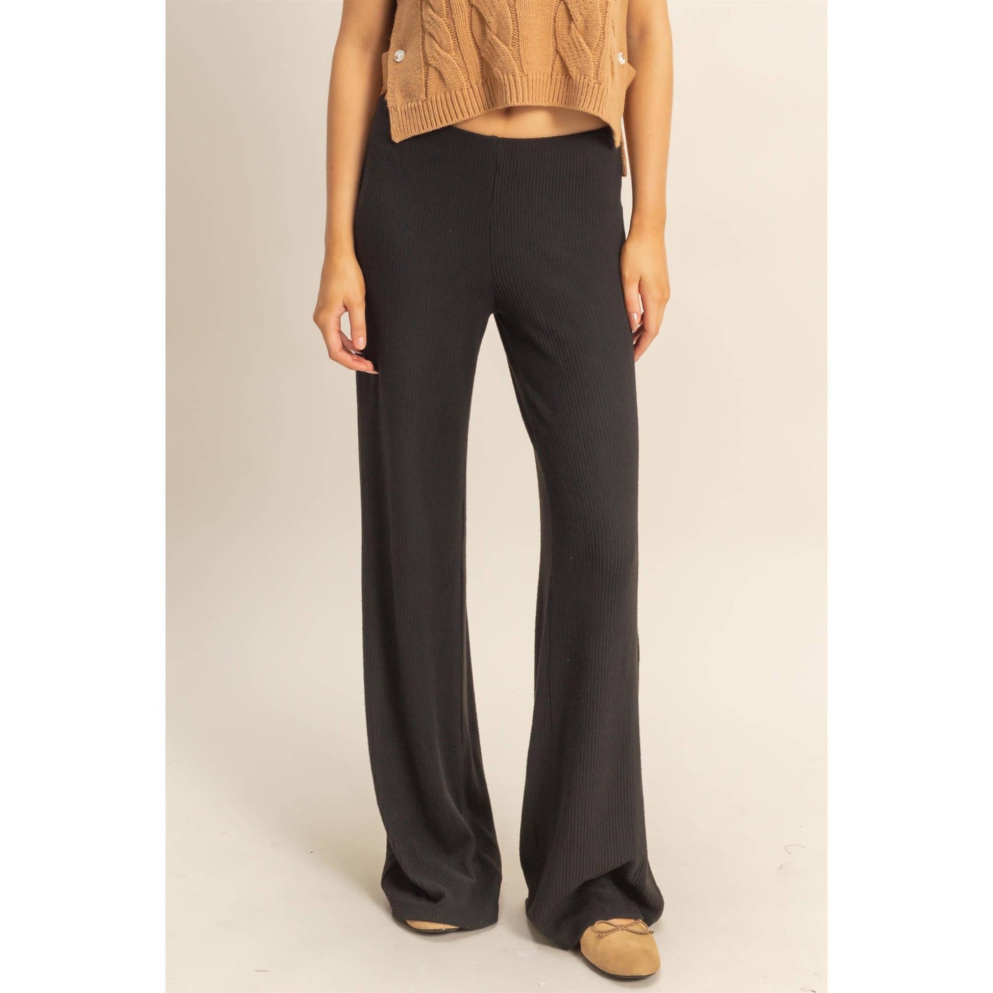 Embrace comfort and style with these flare knit bottoms, perfect for versatile wardrobe options. With a smooth knit finish, they offer a relaxed fit ideal for daytime wear or a casual evening out. Pair them with a fitted top and sneakers for an effortlessly stylish daytime ensemble, or elevate the look with heeled boots and a statement coat for the evening.