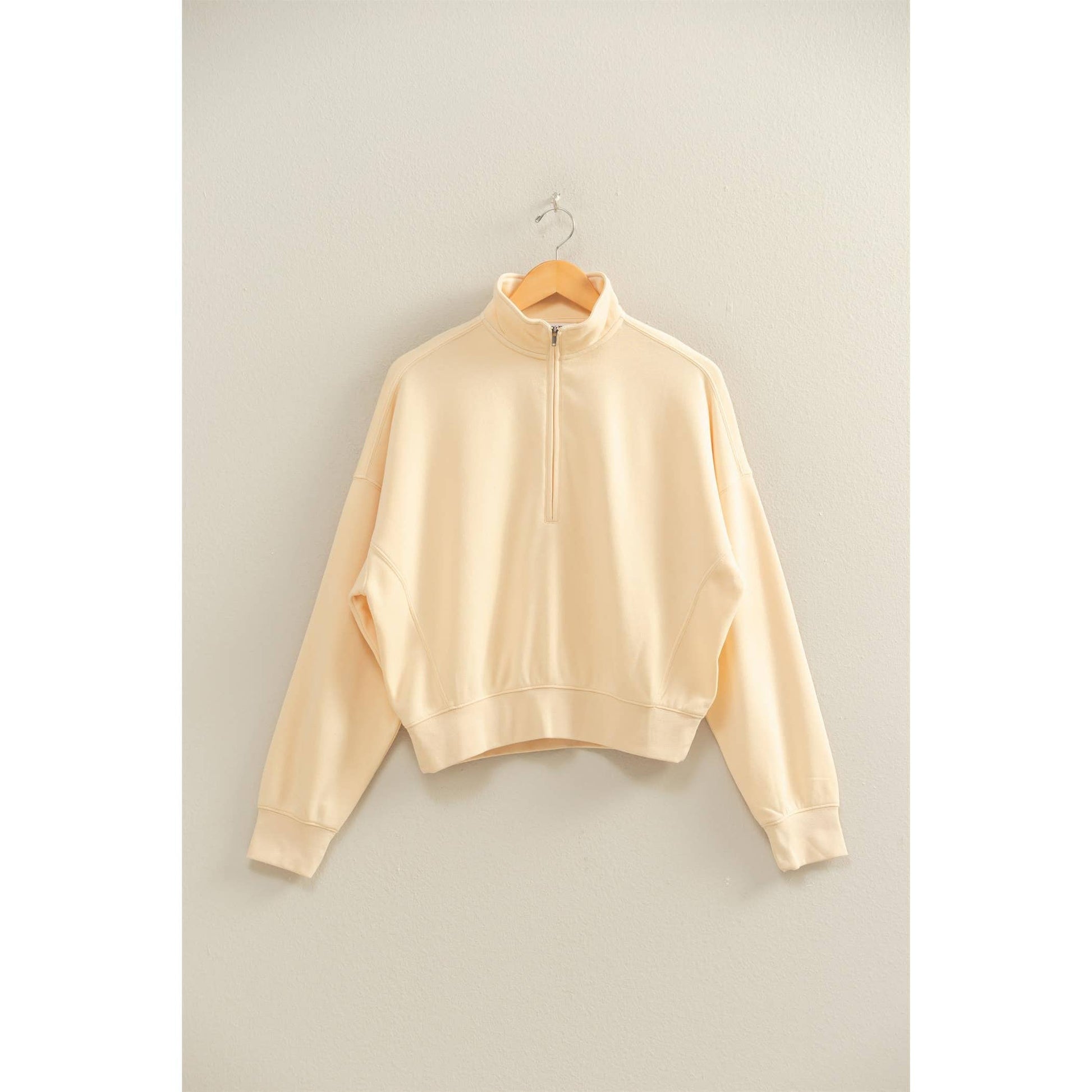 Charm Your Way Through The Day. This Sweatshirt Is Designed With A Casual-Chic Aesthetic, Characterized By A Collar, Easy Half Zipper Closure And Long Sleeves With Drop Shoulders. The Relaxed Fit With Cinched Cuffs And Hem Keeps You Feeling Comfy.