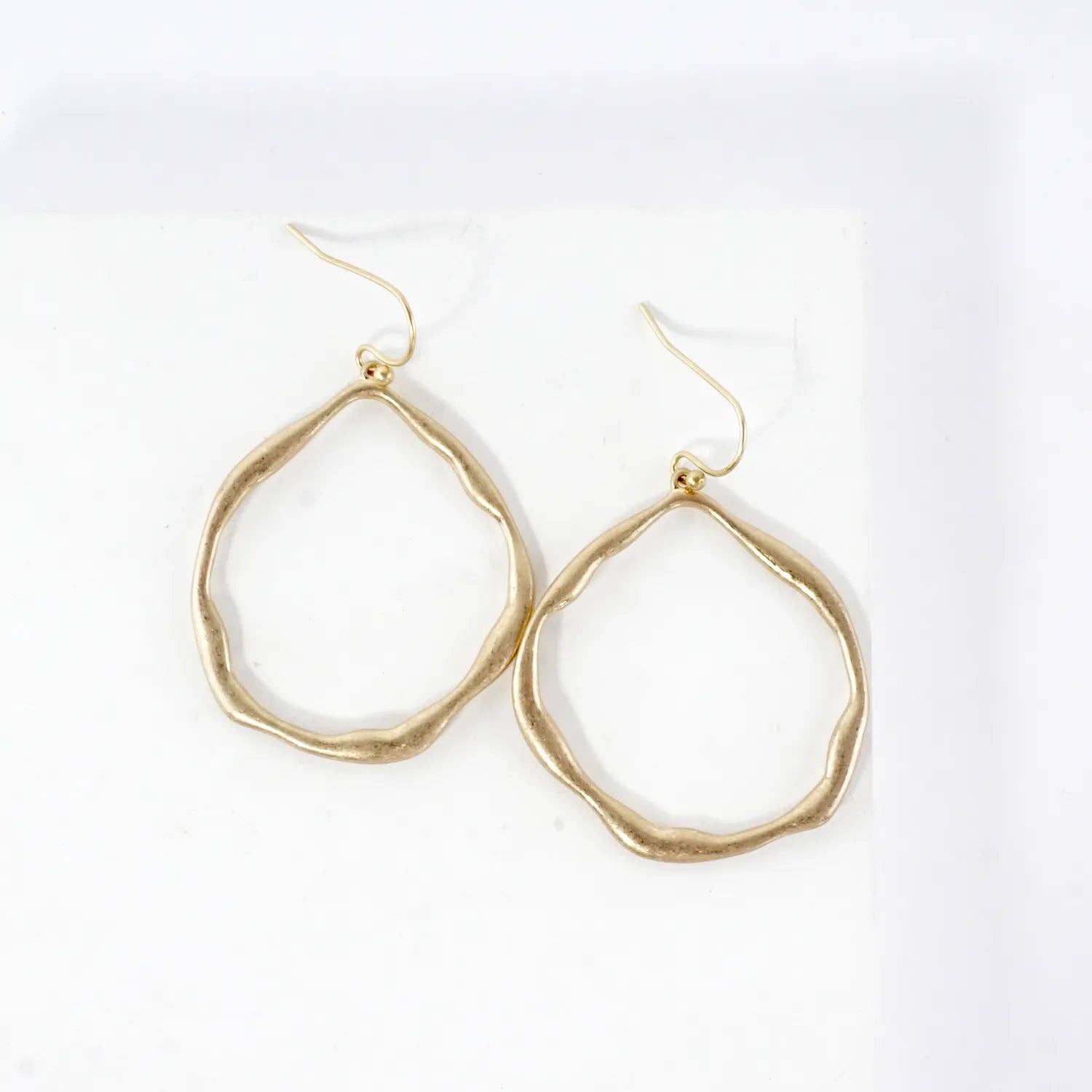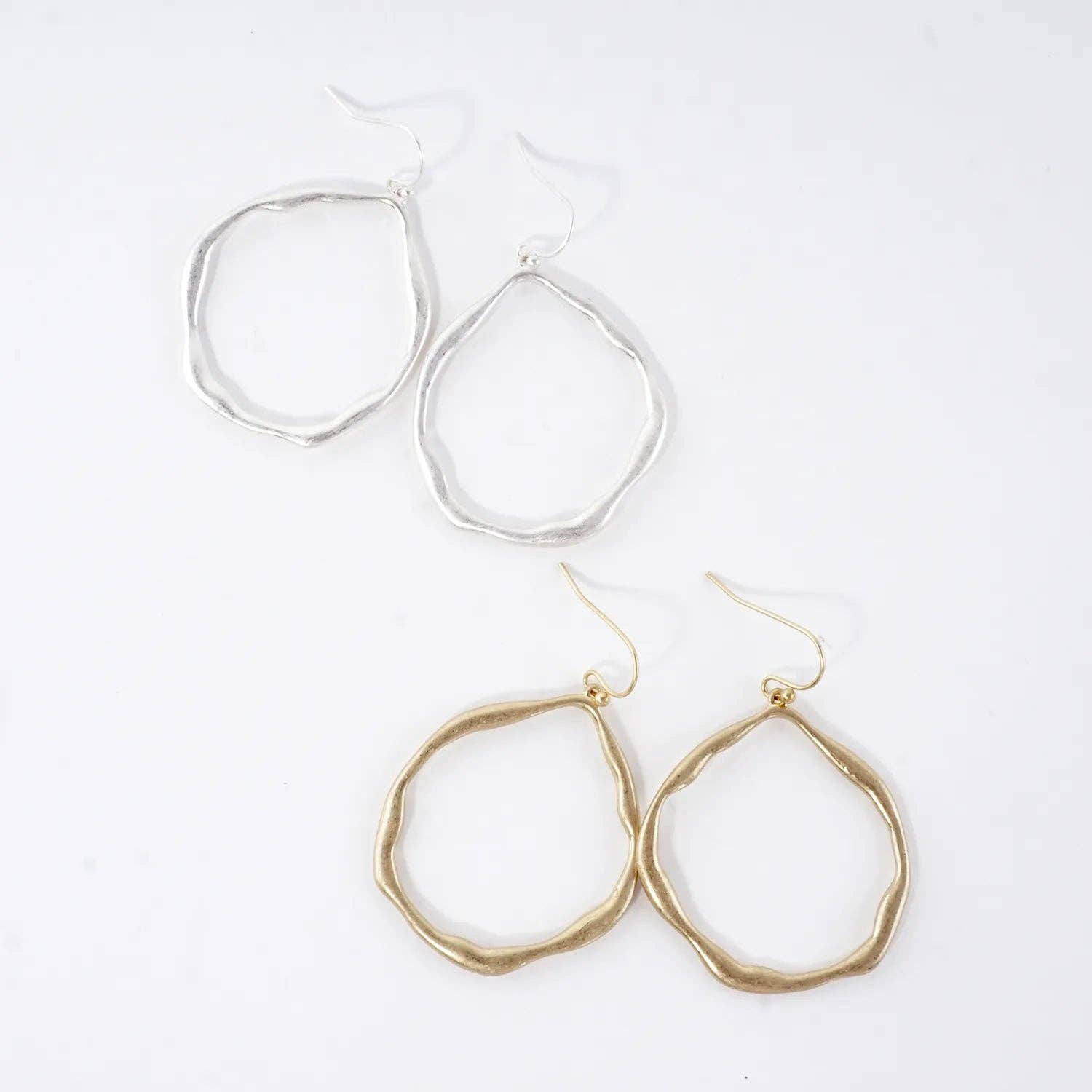 Hammered metal open circle dangle earrings. The perfect finishing touch to any outfit.