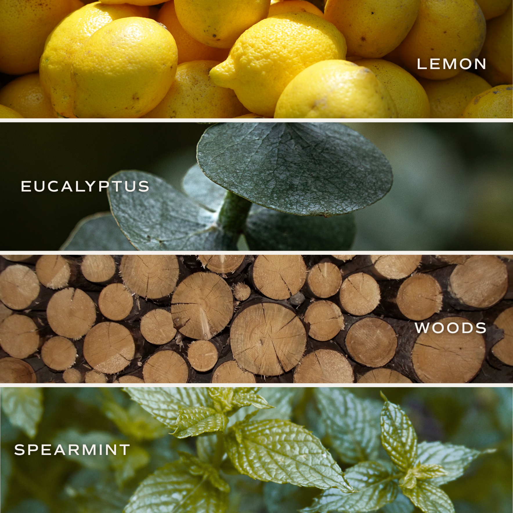 SCENT NOTES: • Top: Lemon, Eucalyptus • Middle: Spearmint • Base: Woods