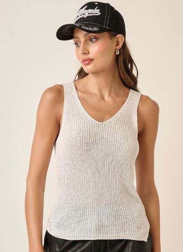 Pointelle knit sweater tank in this season's hottest color Sienna. Goes great with jeans, skirts, trousers and shorts.